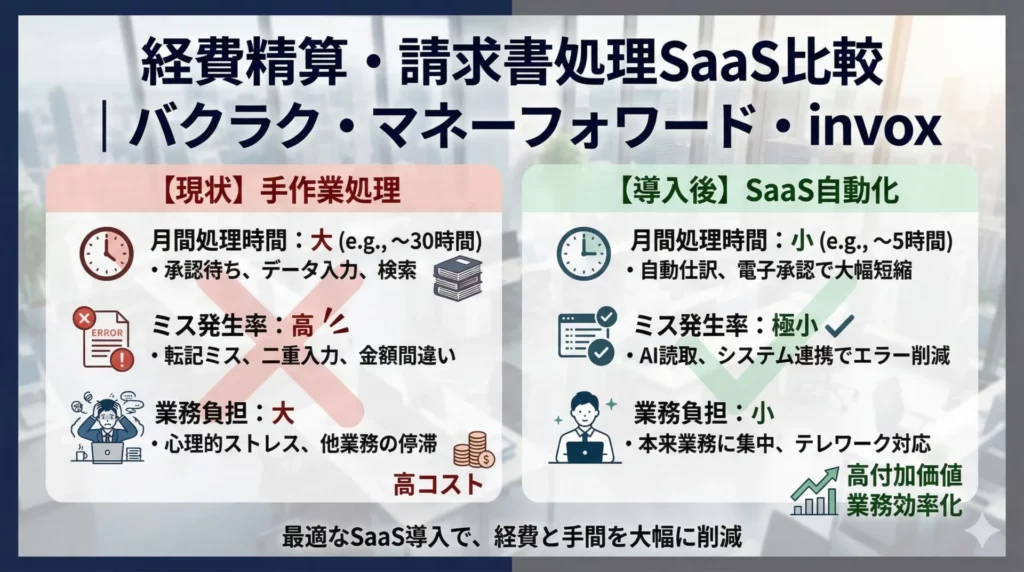 中小企業の経費精算・請求書処理をSaaSで自動化する方法|バクラク・マネーフォワード・invox徹底比較