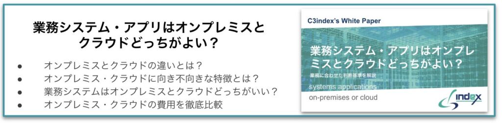 下記の資料では、社内の業務システムを構築する際に選ばなければいけないオンプレミスかクラウドか、どちらが良いかをポイント別・費用感別に比較しながらそれぞれのタイプの向き・不向きの特徴を解説しております。 これから業務システムの開発や導入をお考えの企業様はぜひご参考ください。